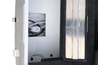 Front control panel - 2 x 10A Push N Lock connector sockets, outboard motor trim, anchor and navigation light switches