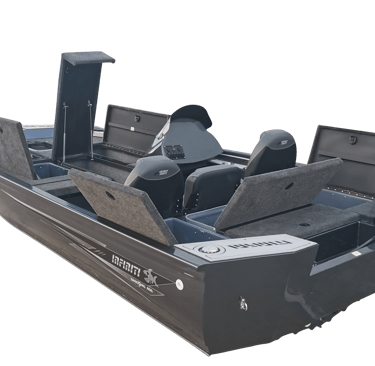 The BassPro 500SC is the side console version of the BassPro 500 model. It features an aluminium side console, larger cockpit with 3 seat positions and smaller forward casting deck and side positioned rod locker.