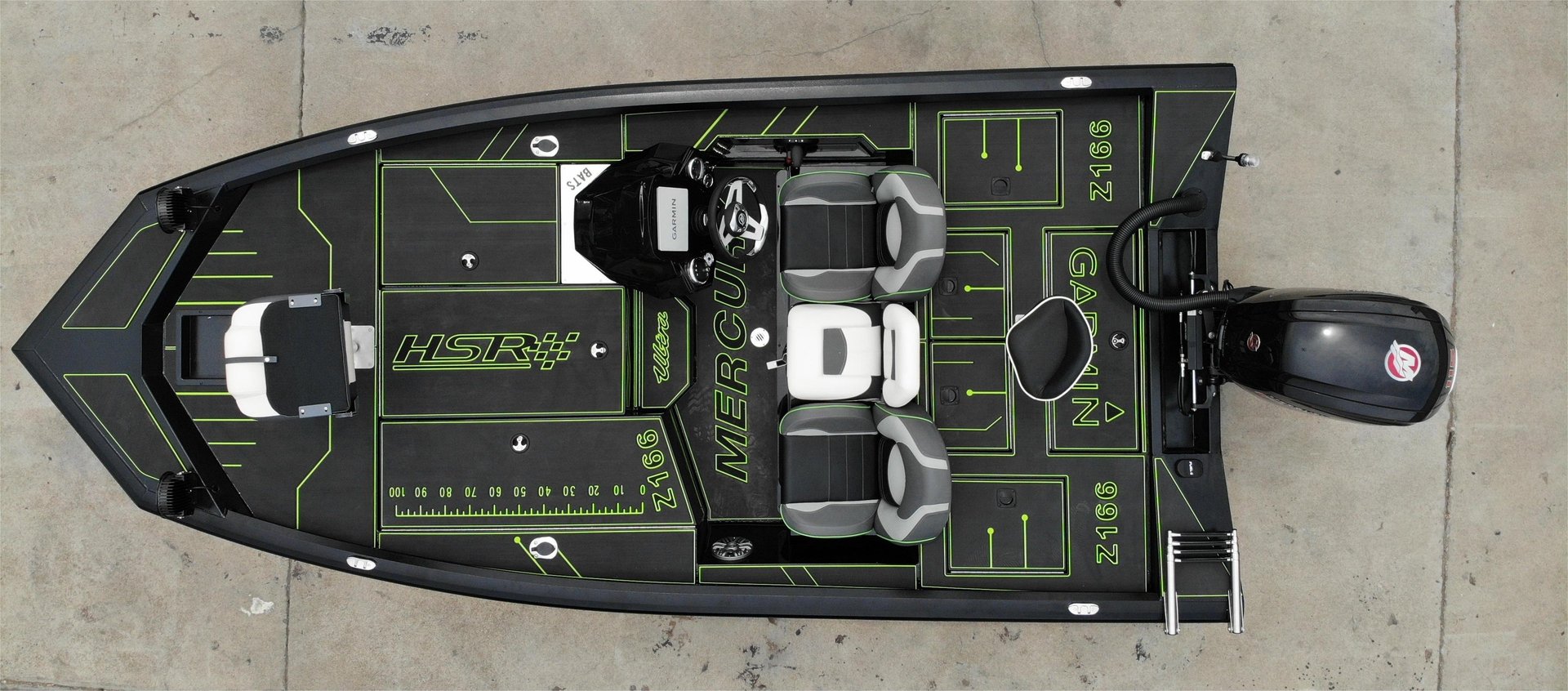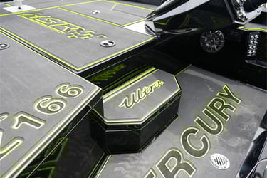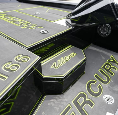 EVA pads to bow deck, cockpit, driver's foot well, arm rests, step & transom wings