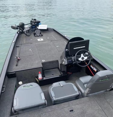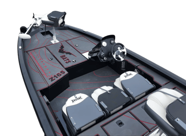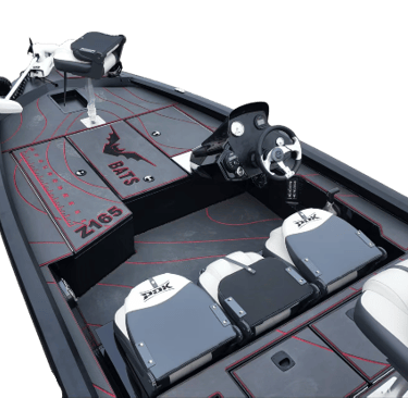 All forward locker features auto On/Off LED strip lighting, space for plenty of rods with butt supports and bungee straps. Battery storage just ahead of the driver's console in the starboard compartment. Push n Lock connectors for reliable electric motor connection and pre-wired back to the deep cycle battery compartment. Step and rear storage boxes can be used as ice chests, if so desired and are plumbed for drainage. A generous steering console can accommodate analogue instruments as well as up to 12” MFD.